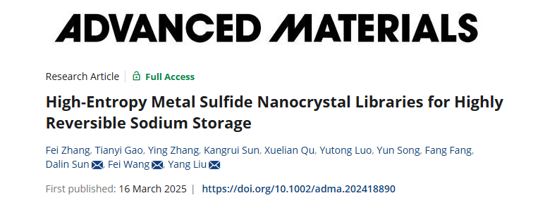 文章信息:Fei Zhang, Tianyi Gao, Ying Zhang, Kangrui Sun, Xuelian Qu, Yutong Luo, Yun Song, Fang Fang, Dalin Sun,* Fei Wang,* and Yang Liu*. Adv. Mater. 2025, 2418890.