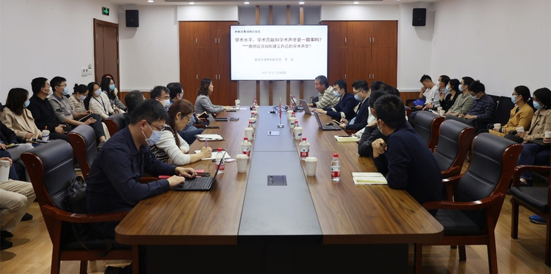 特聘教授、博士生导师、钟扬式好导师李劲教授开讲第一期,题目为“学术水平、学术贡献和学术声誉是一回事吗?—教师应该如何建立自己的学术声誉?”。活动由系主任俞燕蕾教授主持,全系中青年教师40余人参加。