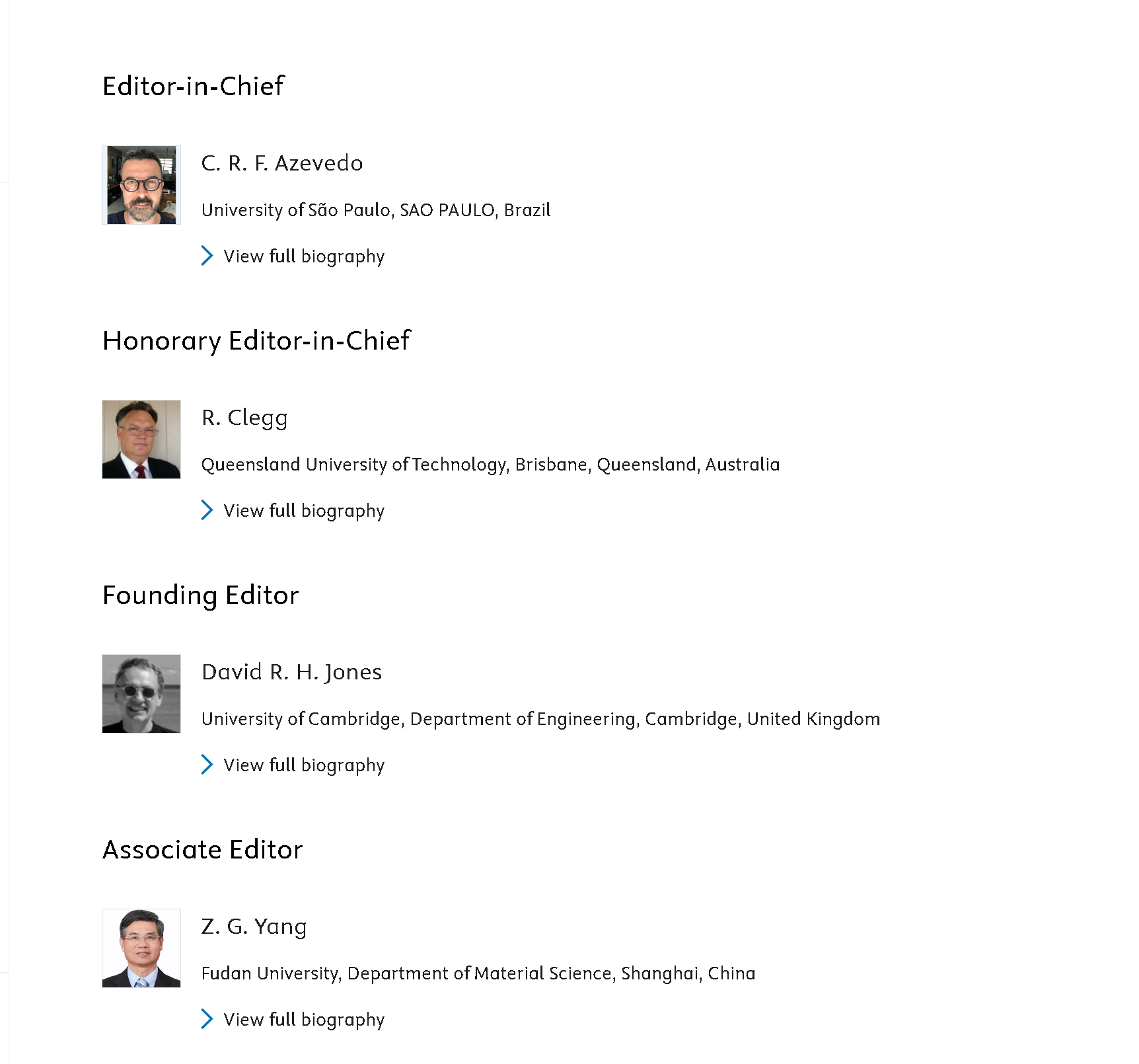 《Engineering Failure Analysis》是Elsevier出版集团与欧洲结构完整性学会(ESIS)于1994年在英国联合创办的国际知名SCI期刊,现设主编1人、副主编1人、主题编辑10人、以及编委70余人。期刊主要收录工程材料与结构在设计、材料、制造、安装、检验、运行、维护、环境、运输、储存、管理等方面与失效分析和预防有关的研究论文、案例分析、技术综述等,并且每二年主办一次“国际工程失效分析会议”(International Conference on Engineering Failure Analysis),被国际失效分析界公认为该领域的顶级期刊。根据中国科学院文献情报中心2023年12月最新发布的期刊分区表,被认定为“工程技术”大类2区,“材料科学:表征与测试”小类1区和“工程:机械”小类2区。