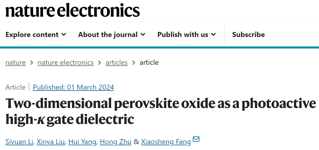 方晓生课题组在《自然—电子学》(Nature Electronics)发表论文,报道了在二维氧化物光敏高κ电介质集成研究中取得的相关进展。