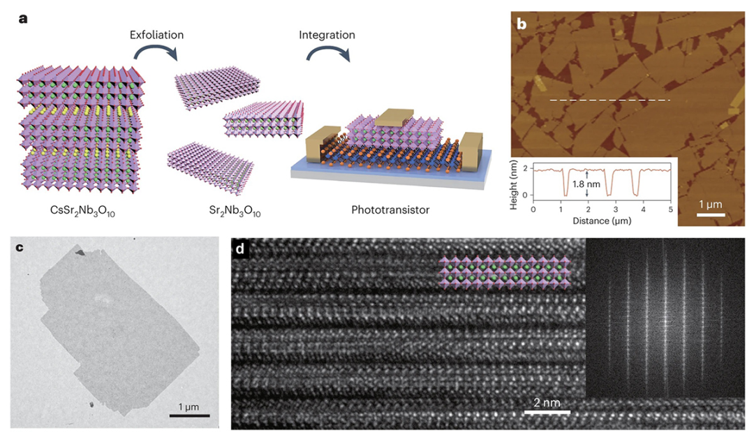 图1. 二维钙钛矿型氧化物Sr2Nb3O10的制备与表征