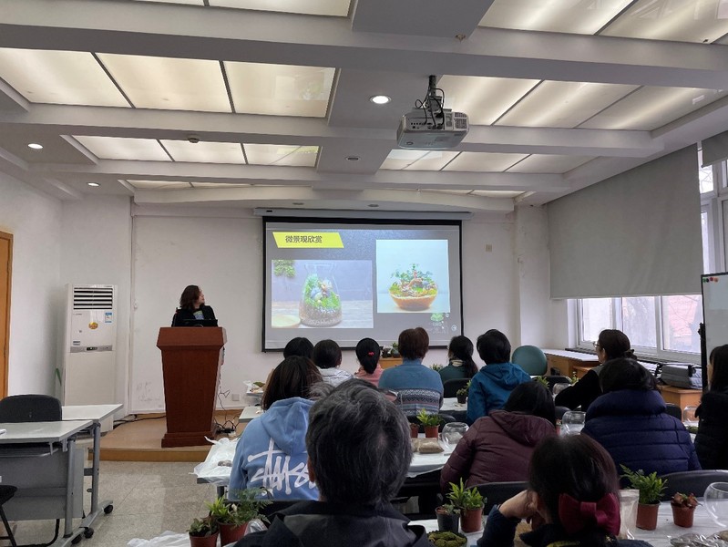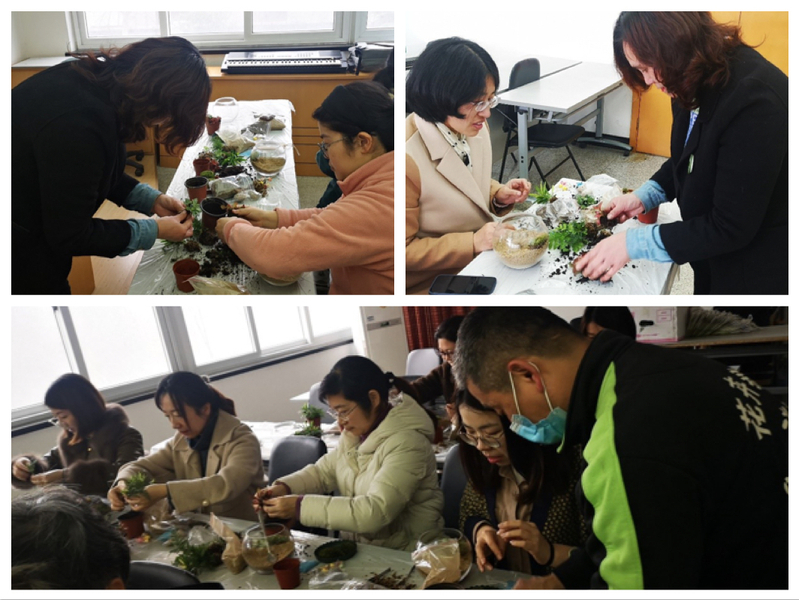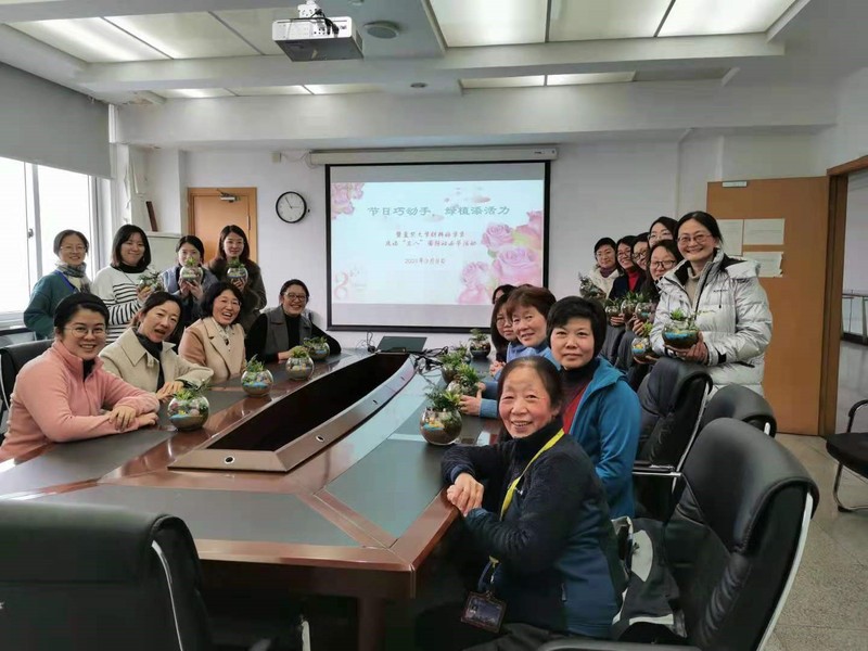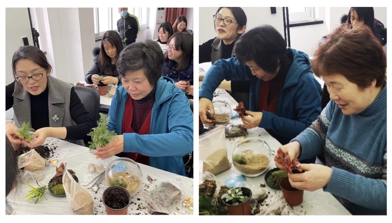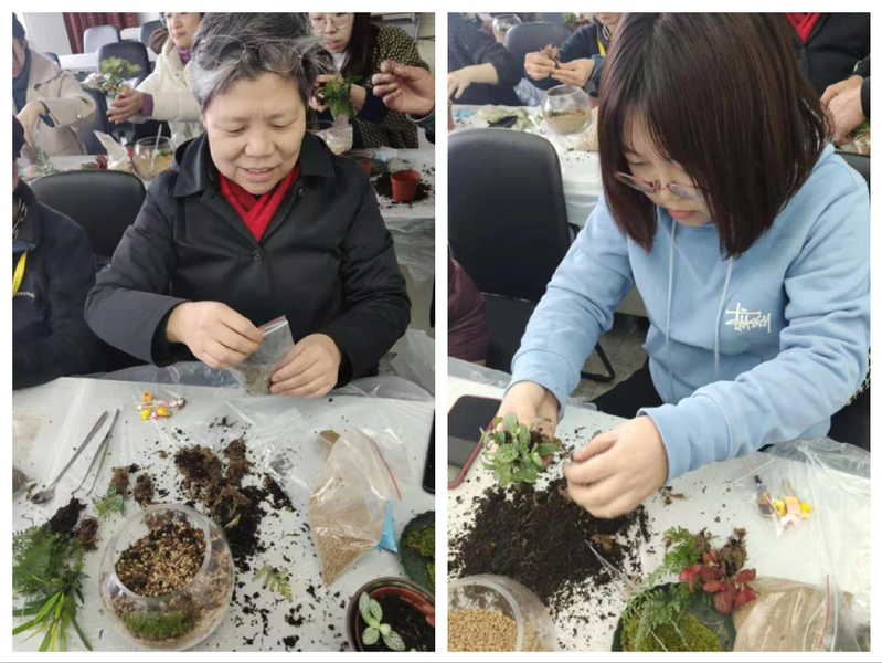 为庆祝第111个三八国际妇女节,台湾a片 20余位女教师在先进材料楼202会议室举行“节日动巧手,绿植添活力”的创意微景观制作活动。