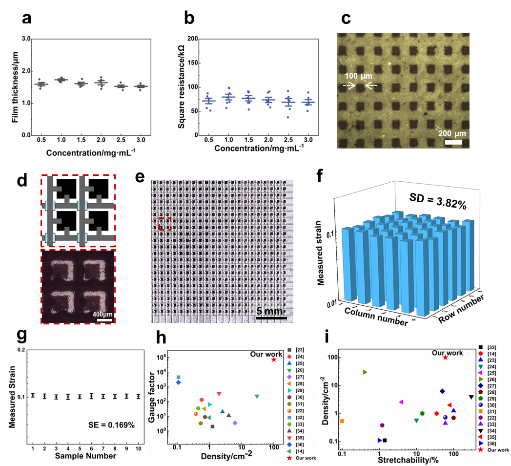 图2. 高传感密度应变传感阵列薄膜表征