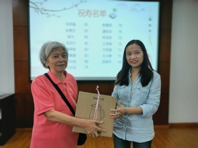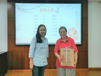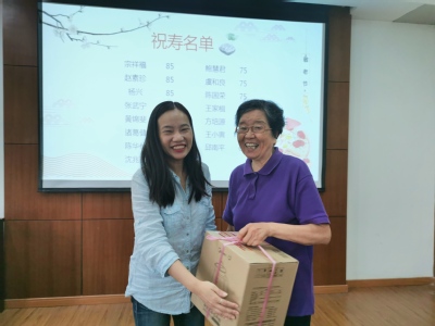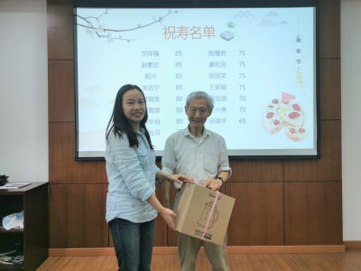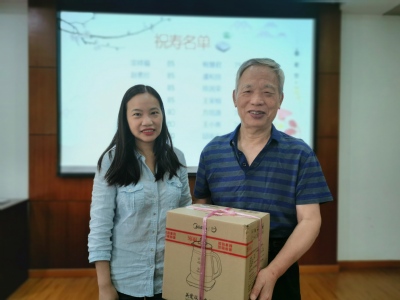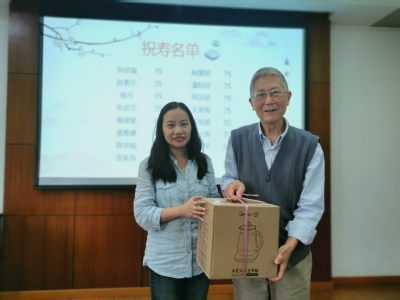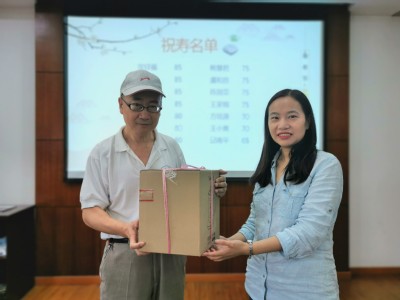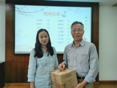 今年“逢五逢十”的寿星共15名,系里准备了养生壶作为生日礼物。包涵老师为寿星们送上礼物和祝福,祝所有老师身体健康,寿比南山。老寿星们按年龄一个个上台,满脸笑容地收下礼物并合照留念。