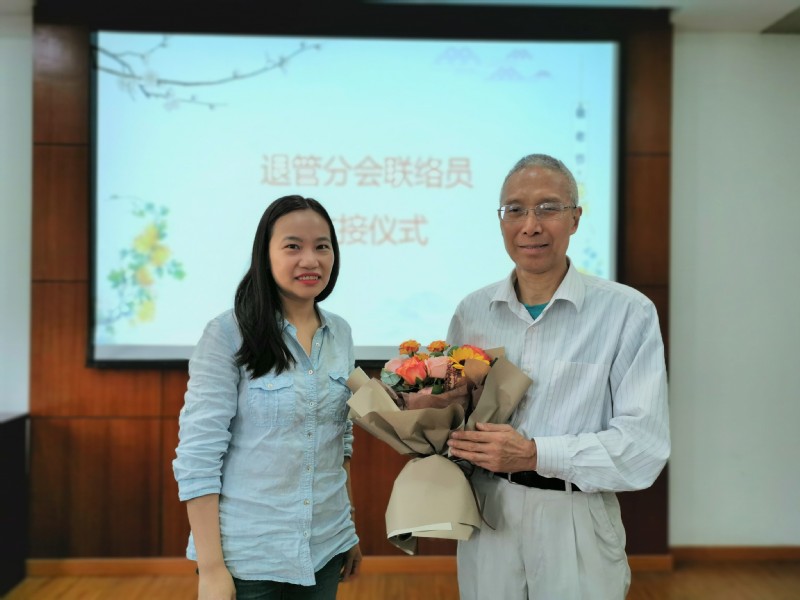 接下来,倪峰老师简要介绍了退管分会的工作安排,宣布从今年十月起,由余剑萍老师接替郑国祥老师担任联络员。包涵老师为郑老师送上鲜花,感谢郑老师近四年来为系退休工作的付出。郑老师在任期间,时时关注每一位退休老师的身体和家庭状况,并及时与学校和系里沟通,为老同志们送上温暖和关怀。郑老师分享担任联络员期间的心得体会,表示虽然自己卸任了,但仍然会一如既往地支持系里的退管工作。余剑萍老师表示,今后会与大家保持沟通和交流,尽心尽力做好为老服务工作。