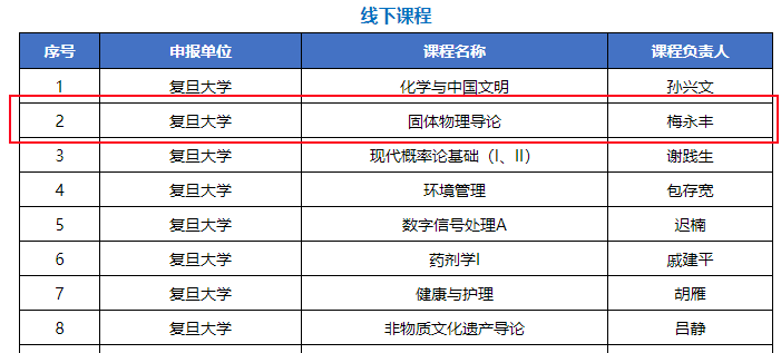 近期,上海市教育委员会发布了2022年度上海高等学校在线、线下、线上线下混合一流本科课程认定结果。我系梅永丰教授主讲的《固体物理导论》课程被认定为2022年度上海高等学校线下一流本科课程。