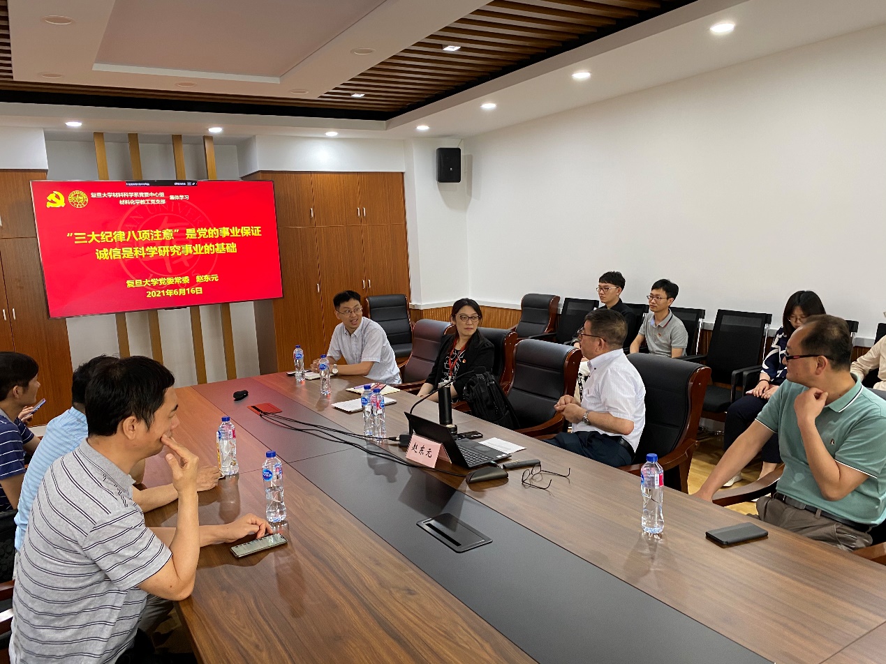 6月16日中午,台湾a片 党委常委、统战部部长、化学与材料学院院长、中国科学院院士赵东元应邀在江湾校区先进材料楼221会议室作题为《“三大纪律八项注意”是党的事业保证,诚信是科学研究事业的基础》的专题报告。报告会由台湾a片 党委书记于瀛主持,化学与材料学院党委书记唐晓林,以及台湾a片 党委理论学习中心组、材料化学教工党支部共30余人参会。