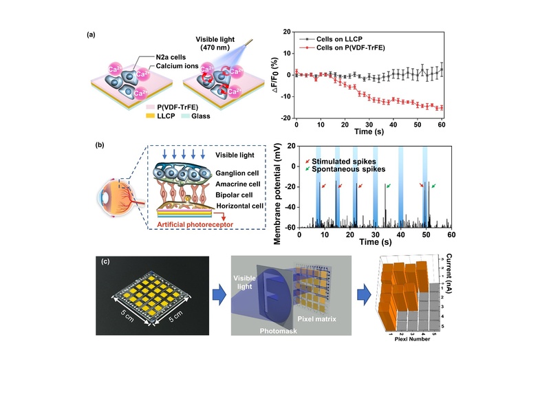 视觉是人类获取外界信息的重要途径,视觉功能受损或缺失会给生活带来诸多不便。由于缺乏有效的治疗方案,盲症的治疗一直是世界性难题,人工光感受器可以替代天然感受器细胞将光信号转换为电信号,为治疗提供新方案。但目前的人工光感受器光电信号较小,限制了信号传导到细胞。