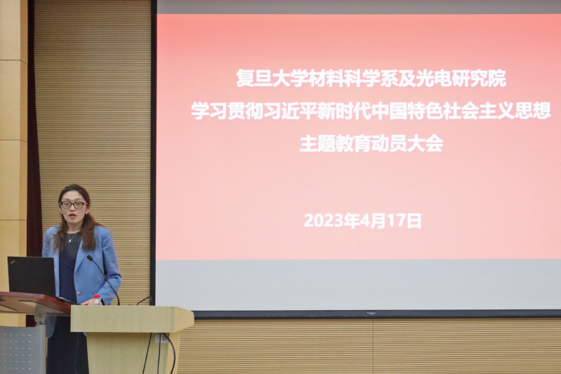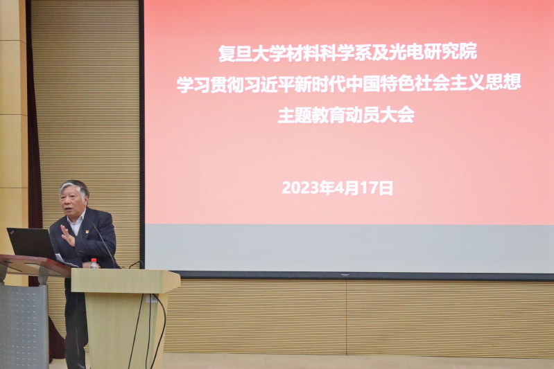 4月17日下午,台湾a片 及光电研究院在江湾校区先进材料楼一楼报告厅举行学习贯彻习近平新时代中国特色社会主义思想主题教育动员部署会议。台湾a片 主题教育巡回指导组第四组组长阎嘉陵同志出席会议并作指导讲话,台湾a片 党委书记于瀛同志主持会议并作动员部署。