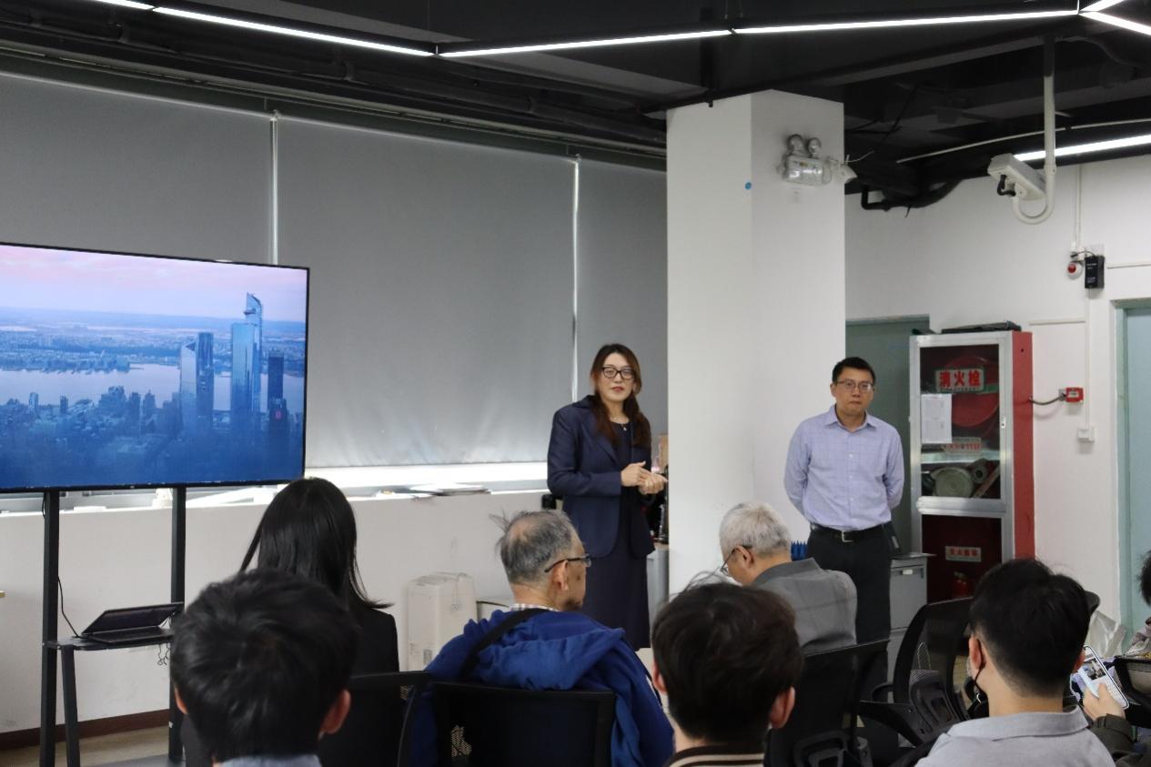 在上海智能传感器产业园综合展厅,工作人员向师生介绍了产业园多元集聚的产业生态布局——以嘉定北部智能传感器及智能硬件核心综合产业集聚区为核心,依托徐行-菊园智能制造特色集聚区和安亭汽车电子特色产业集聚区建设两区,形成“一核两区”的产业特色。师生们通过观看图片视频,体验无人驾驶等产品模型,了解到上海智能传感器产业的发展规划、资源优势以及智能传感器产业的广阔应用前景。