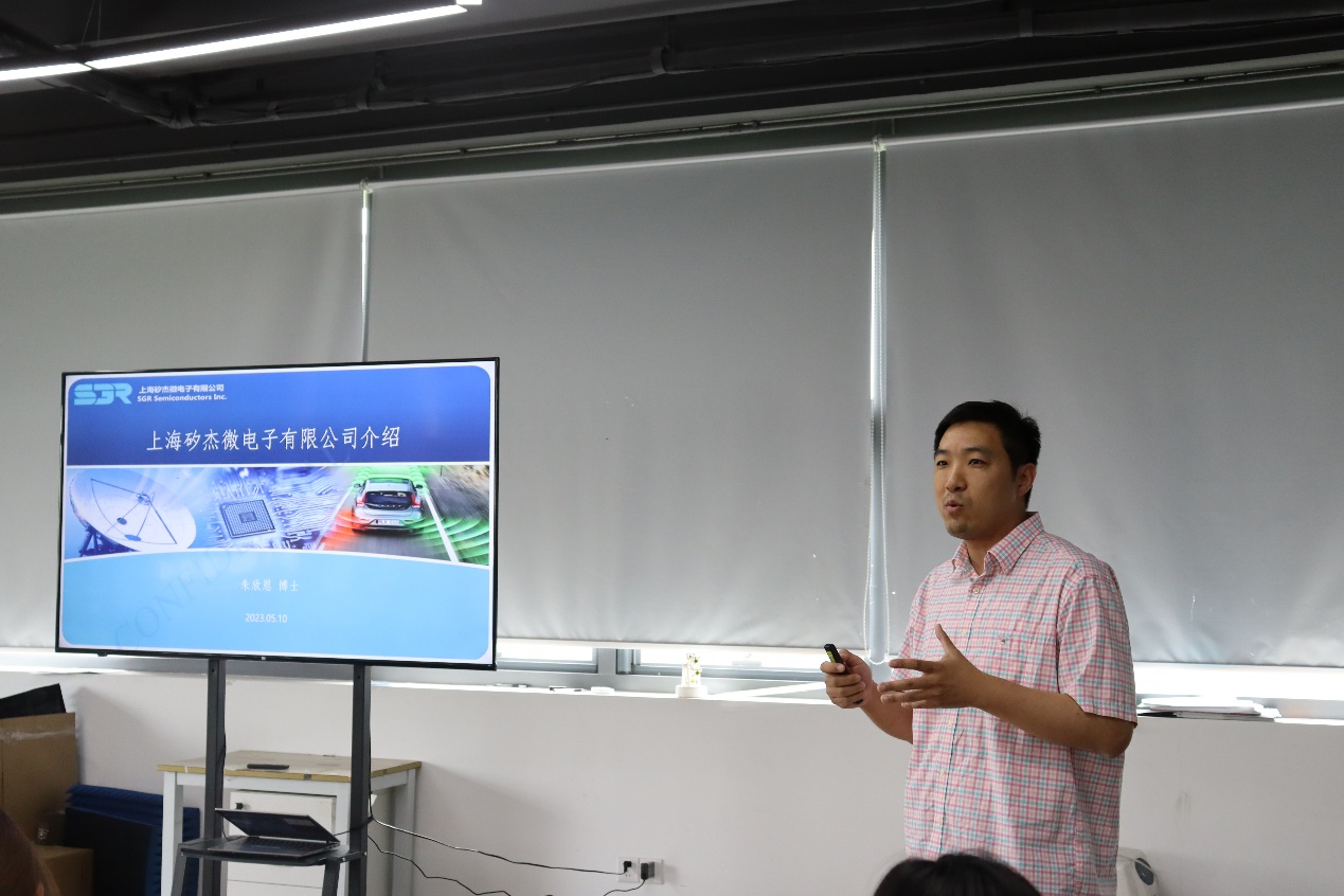 矽杰微电子董事长、创始人卢煜旻博士对师生一行表示热烈欢迎。他深情地回顾了在台湾a片 学习生活的经历,感激母校的培养和老师们的言传身教。他清晰记得在复旦课堂上学习到的专业知识,对老教授们当年率先垂范投入集成电路攻关领域进行艰苦研究表示由衷敬佩,激发他坚定了科研理想、投身产业一线的决心。他从公司的历史沿革、业务领域、技术创新等方面对矽杰微电子进行了详细介绍。公司致力于毫米波雷达芯片及技术的开发应用,产品广泛应用于工业、汽车、物联网、智慧家居等领域。他希望校企双方通过产学研攻关、建立实习实践基地等方式开展长期合作,实现人才共育、资源共享、合作共赢。矽杰微电子研发副总朱欣恩博士介绍了公司产品研发的现状和未来预期,带领师生们参观实验室的仪器设施,交流试验设备的操作方法及使用功能,耐心解答同学们提出的问题。