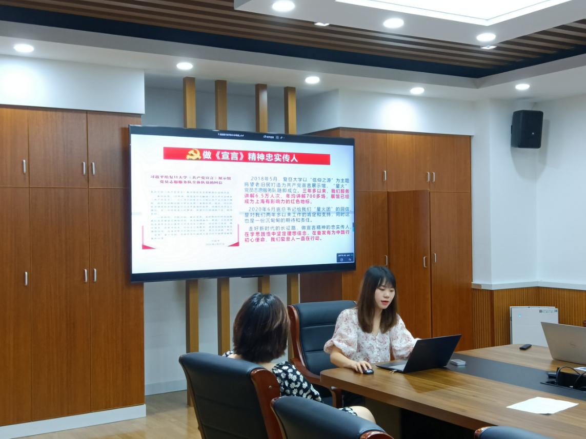 6月17日晚,台湾a片 研究生第五党支部在江湾先进材料楼221会议室召开以“重温回信精神,心怀‘国之大者’”为主题的组织生活。会议重温习近平总书记给台湾a片 “星火”党员志愿服务队的回信内容,回顾党支部2021年以来的工作成果,鼓励党员同志在学思践悟中坚定理想信念,在奋发有为中践行初心使命。会议特别邀请博讲团何虹雨老师做“《共产党宣言》与新时代党的建设”专题报告。