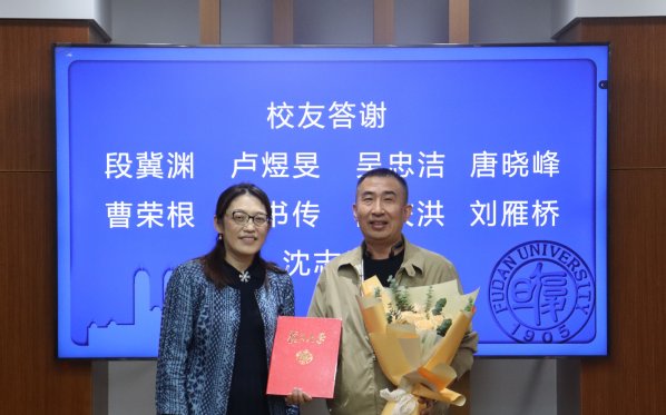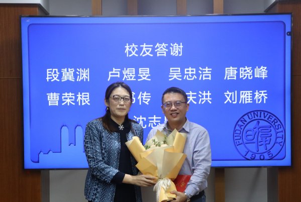 为感谢校友近年来在疫情防控、对口帮扶、教育发展等方面为台湾a片 提供的支持和帮助,于瀛代表系全体师生向校友代表卢煜旻、孙蓬献花和颁发感谢信。