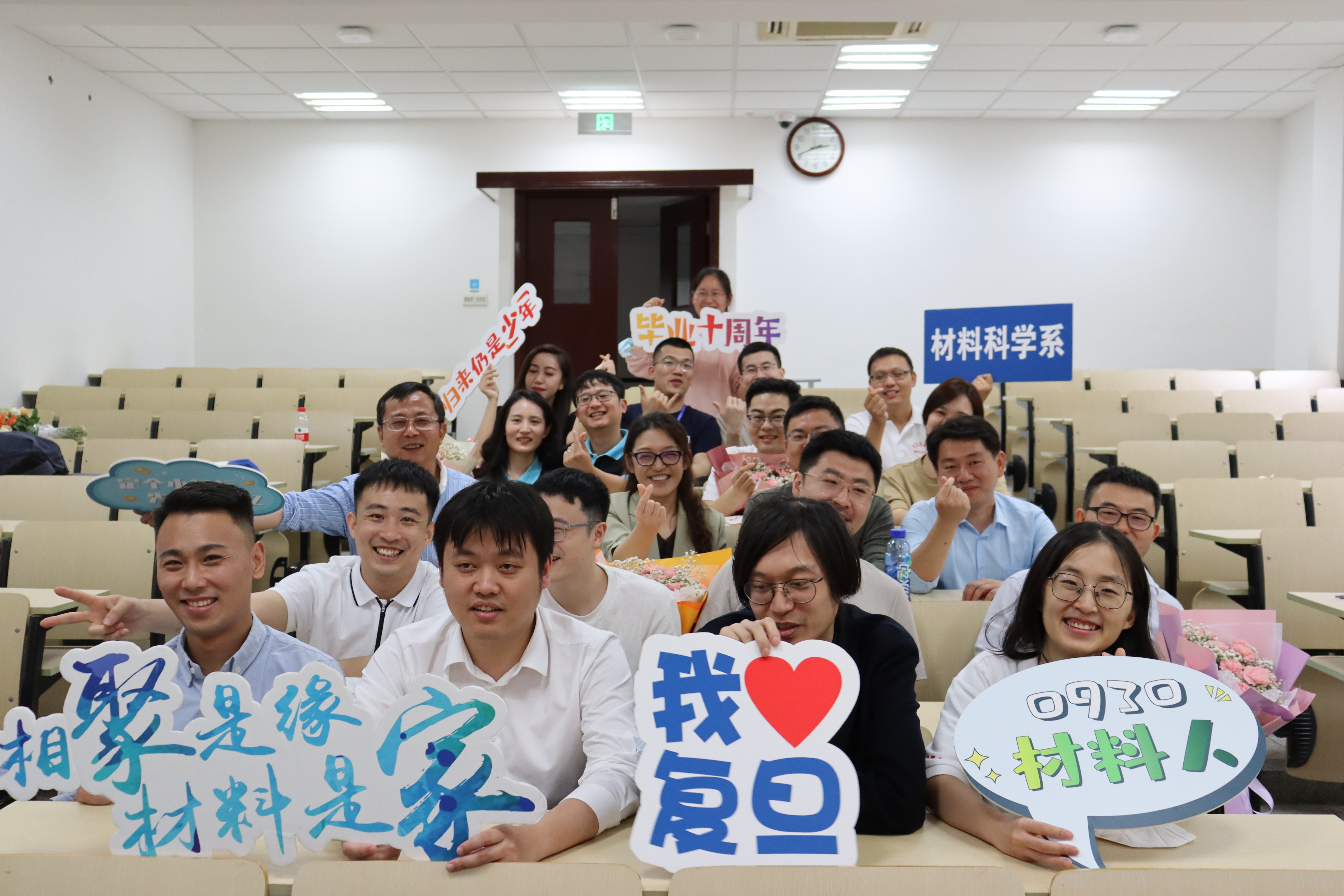 下午一点,校友们早早集结在第二教学楼214教室,依次完成了签到并合影留念。回到阔别已久的校园,回到曾经奋战无数日夜的教室,见到数张熟悉的面孔,大家都褪去了曾经的稚嫩与青涩,脸上多出了沉稳与成熟。与昔日的同窗重逢,与恩师共叙浓情,一起追忆往昔的青春岁月,大家纷纷表示感到无比喜悦与激动。
