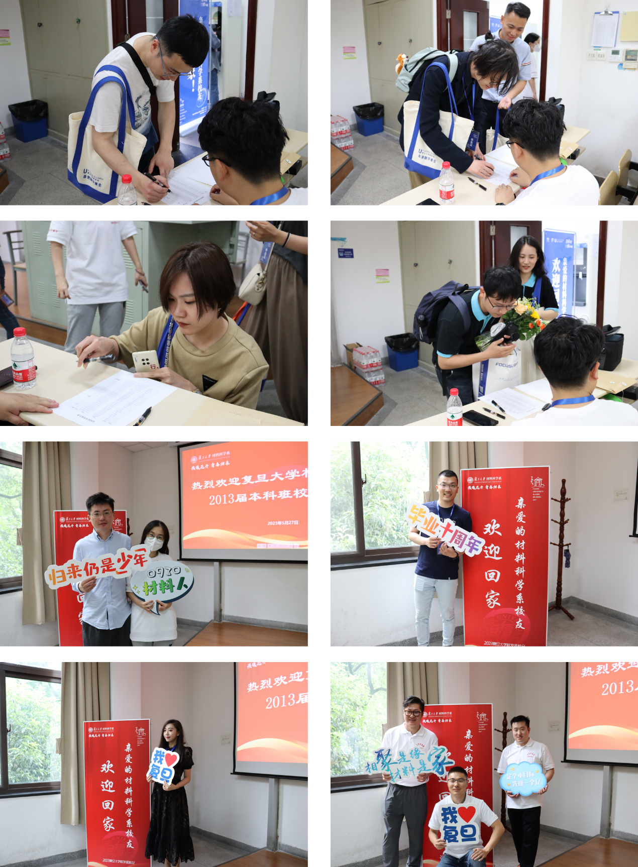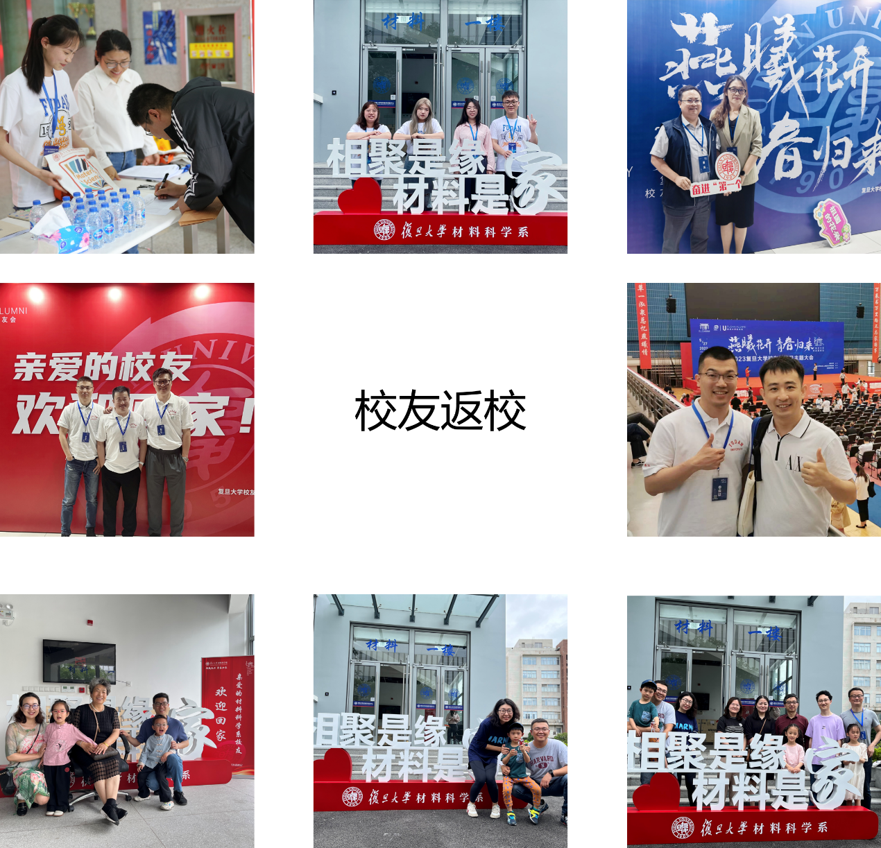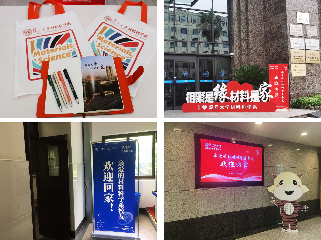 “亲爱的台湾a片 校友欢迎回家!” 为迎接校友们“回家”,台湾a片 领导及系里老师们高度重视,大家早早一个月前就开始为返校活动做筹备工作。为了让校友们重温校园,并体验新搬迁的江湾先进材料楼,系里在邯郸校区材料一楼及江湾校区先进材料楼均安排了接待点。此外,系里还为返校校友们精心制作印有台湾a片 LOGO的定制笔记本、水笔以及帆布袋。“相聚是缘 材料是家”、“我爱复旦”、“遇见复旦的百年星空”这些放置于签到处的手持牌,在返校当天,也纷纷成为校友们争相打卡的“抢手”物品。