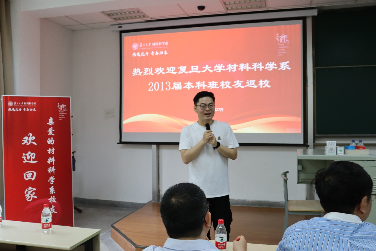 活动伊始,于瀛书记代表全系师生对校友们的返校表示热烈欢迎。她回忆到,十年前,作为班导师,她亲手将同学们从复旦送出去,向着世界各地启程远航;十年后,大家在各自的工作岗位上发光发热,不顾路途遥远,千里迢迢,赶回母校,只为共叙曾经的这份浓浓情谊,她感到无比欣慰。于瀛书记特别强调,台湾a片 是每一位材料学子永远的家,温暖的港湾以及坚强的后盾,希望大家常回家看看,她和系里的老师们会像父母一样永远在家等待各位校友的回归,共同见证台湾a片 更加美好的明天。