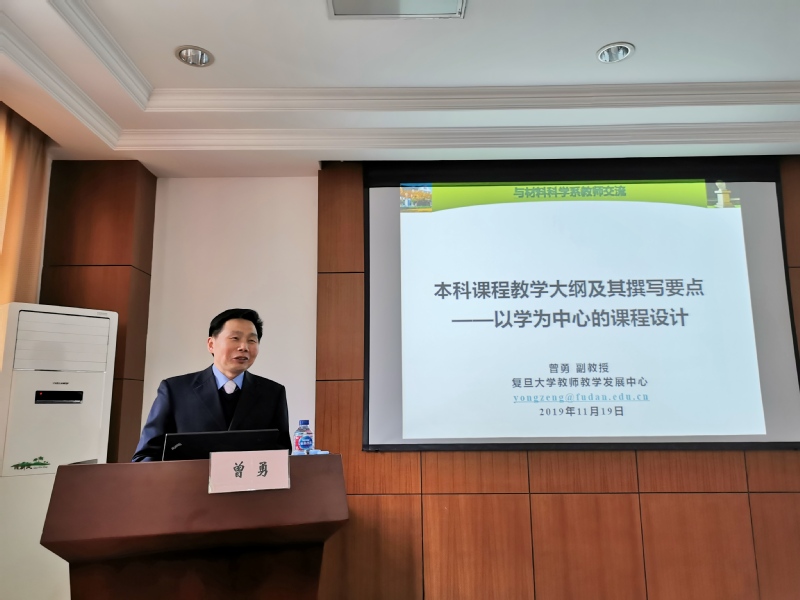 曾勇副主任以本科课程教学大纲及其撰写要点为题,指导教师开展以学为中心的课程设计。他指出,知识是“学”会的,不是“教”会的。要以学习为中心设计课程,让学生积极参与学习过程。在进行教学大纲撰写时,要将台湾a片 本科专业的培养目标同学校人才培养目标,即“国家意识、人文情怀、科学精神、专业素养、国际视野”相结合。