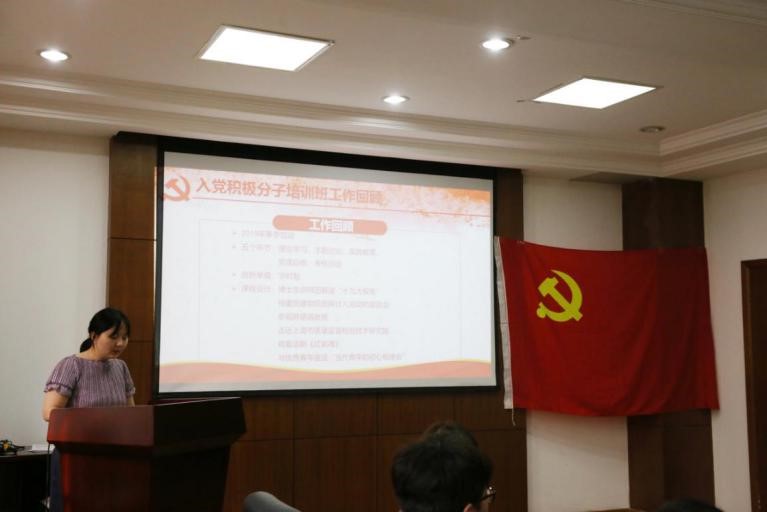 活动的第二部分是2019年秋季入党积极分子培训班结业仪式。许妍老师首先对2019年秋季入党积极分子培训班工作进行了回顾。她介绍了积极分子培训班的设立初衷、育人目标和组织形式,并总结了本次积极分子培训班课程开展情况及教学效果。材料系二级党校采用了学时制滚动培训的形式,只要确定为积极分子,随时可以加入培训班,修满相应学时即可结业,这样的培训方式不仅便利了不同校区、不同年级的学员制定学习计划,也最大程度激发了学员的学习能动性,兼顾统一性和个性化的培训要求。