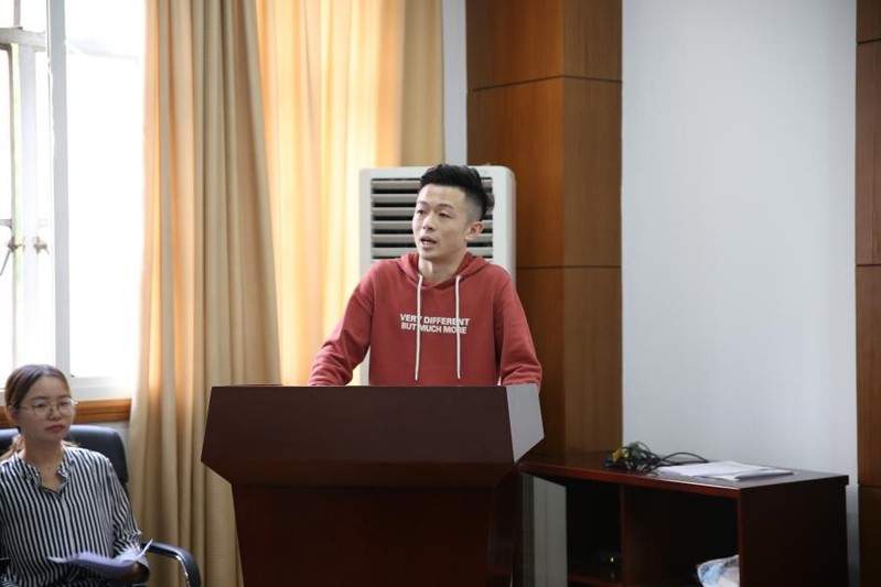 2017级硕士研究生罗理毅作为新发展党员代表发言,他讲述了自己的入党历程,回顾了自己的入党动机和在党校中的学习经历,并且强调了“四个意识”中“政治意识”对自己的影响。最后他总结在积极向党组织靠拢的过程中,曾经参加过的党组织活动,实践活动以及党校集中学习经历让他明白一名共产党员的责任与担当,将在未来的学习生活中激励自己发挥共产党员的先锋模范作用。