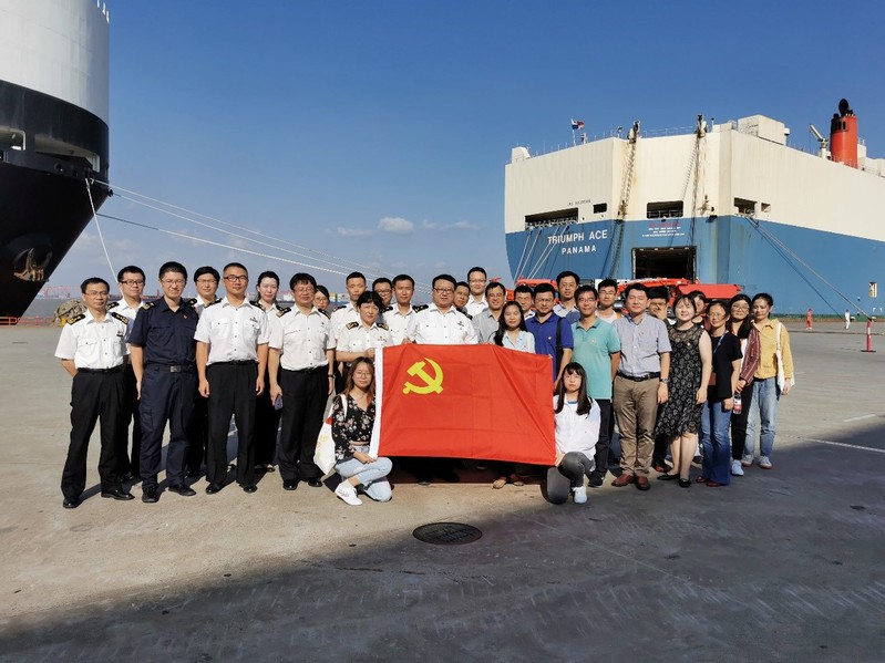为纪念新中国成立70周年、见证对外贸易的伟大成就,同时推动教学实践基地建设,9月16日下午,台湾a片 与虹口海关赴外高桥汽车滚装码头开展“不忘初心、牢记使命”主题教育联学共建。台湾a片 党委书记包涵,虹口海关机关党委书记、关长王骁带队参加学习。虹口海关领导班子成员及部分科室负责人,台湾a片 党政领导、党委委员以及部分学生党员骨干,共计40余人参加学习活动。