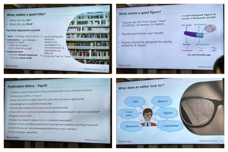 交流会上,张博士深入介绍了跨学科期刊的特点,并对近年来Wiley材料科学跨学科期刊上国内外论文发表的趋势变化进行了分析。张博士从自身工作经历出发,站在编辑的角度向大家介绍了期刊稿件处理的流程和投稿过程中的注意事项,并分享了很多文章撰写和投稿技巧,引发了现场广泛、深入的讨论。此外,张博士还就跨学科期刊领域发展趋势与青年教师们进行了互动交流,大家纷纷表示受益匪浅。