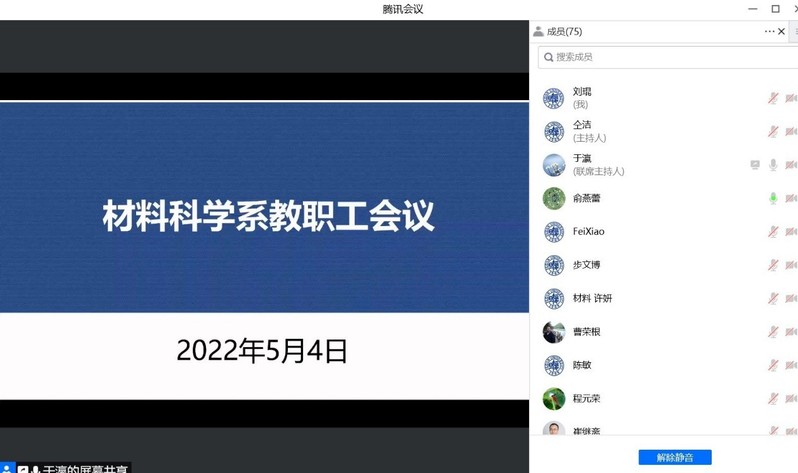 提高政治站位,全系“云端”合力育人。5月4日晚,我系召开全体教职工会议。系主任俞燕蕾传达学校干部工作会议讲话精神并就校区网格化管理做了详细的说明。俞主任贯彻了4月30日全校党政干部会议精神,传达了学校疫情防控下一阶段的重点工作,并指出必须根据《校园疫情防控分类管理工作实施方案》(第二版),严格落实校园消杀和个人防护的手势,稳妥推进实验室开放和运行,做好毕业生论文离校和就业工作。再次强调研究生导师要发挥第一责任人的作用,在关键时期关心关爱研究生身心健康,做好学生的安全管理教育工作。副系主任蒋益明对本学期教学工作调整进行解读,并对线上教学及考试的疑难困惑进行了详实的解答。蒋益明强调,全体教师要守好线上教学的主阵地,落实落细教书育人责任,保障线上教学工作平稳开展。党委书记于瀛传达学校党委对现阶段疫情防控工作的要求,向一直奋战在校内疫情防控一线的学工团队成员、老师们表示感谢。会中,于书记带领大家共同学习了习近平总书记在中国人民大学考察时重要讲话精神,要求全系教职工在上海市社会面动态清零攻坚战的关键时期,要提高政治站位,从自身做起,严格落实上海市的疫情防控要求,校内人员要严格遵守网格化管理要求,做到守土有责、守土尽责,守好疫情防控成果。