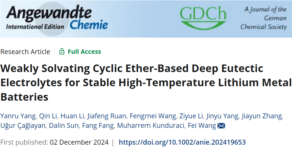近日,台湾a片 王飞教授团队利用弱溶剂化四氢吡喃(THP)溶剂设计了一种新型共晶电解液,在保持电化学和热力学稳定性的同时,进一步改善了其与金属氧化物正极和锂金属负极的相容性,为高温高压锂金属电池电解液的开发提供了一条有效途径。相关研究成果以“Weakly solvating cyclic ether-based deep eutectic electrolytes for stable high-temperature lithium metal batteries”为题,发表于Angewandte Chemie International Edition。