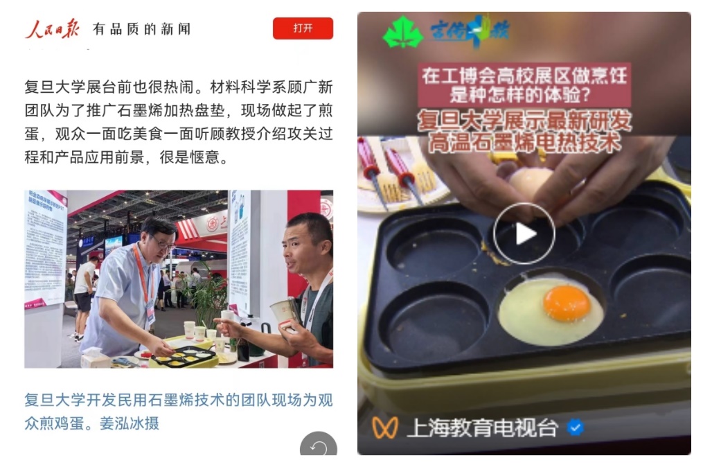 9月19日至23日,在上海国家会展中心召开了第23届中国国际工业博览会,台湾a片 今年共有19个项目参展,涵盖新材料、生物医药、信息与通信技术、人工智能等多个领域。其中,台湾a片 顾广新团队开发的高温石墨烯电热技术及家电产品,在工业博览会上现场演示,备受瞩目,受到了人民日报、上海教育电视台等多家媒体的关注和报道。