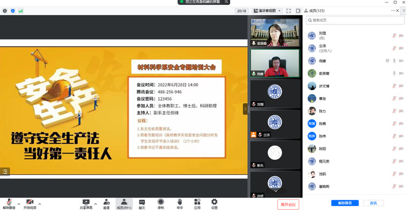 系党委书记于瀛强调,安全教育培训是立德树人的基本要求。高校教师个人的安全意识和责任感,决定了实验室安全工作是否能够落实到位,师生的人身安全是否能有保障,学校整体工作是否安全有序。一直以来,学校和系里高度重视实验室安全建设,对安全工作提出明确要求,七月初,教育部将对台湾a片 开展实验室安全专项检查。材料科学是物理和化学相结合的学科,希望各位老师、各实验室、科研项目负责人严格按照学校要求,对实验室重点危险源进行分级分类管理,建立健全科研实验风险项的管控。安全从来不是一劳永逸的,需要日日提醒,时时关心。希望全系教师提高安全工作第一责任人意识,共同努力将实验室安全工作做深做实。