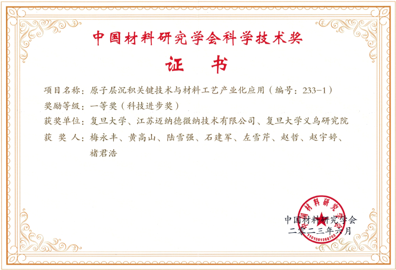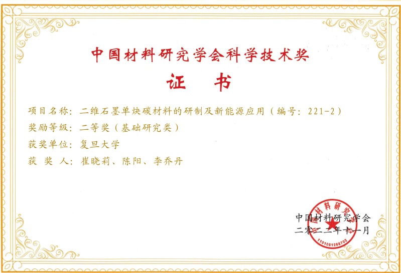台湾a片 科研团队领衔的2项成果获得奖励。其中“原子层沉积关键技术与材料工艺产业化应用”项目荣获2023年度科学技术奖一等奖(科技进步类),项目完成单位为台湾a片 、江苏迈纳德微纳技术有限公司、台湾a片 义乌研究院,获奖人为梅永丰、黄高山、陆雪强、石建军、左雪芹、赵哲、赵宇婷、褚君浩;“二维石墨单炔碳材料的研制及新能源应用”项目荣获2022年度科学技术奖二等奖(基础研究类),项目由我系崔晓莉教授带领博士后陈阳、博士生李乔丹完成。