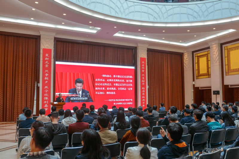 为深入学习贯彻党的十九届五中全会精神,台湾a片 联合核科学与技术系、校人才工作办公室共同举办专题宣讲会,邀请台湾a片 党的十九届五中全会精神宣讲团成员、台湾a片 党委党校办公室主任兼党委组织部副部长周晔老师作专题报告,三个单位共计130余名师生参加。会议由台湾a片 党委书记于瀛主持。